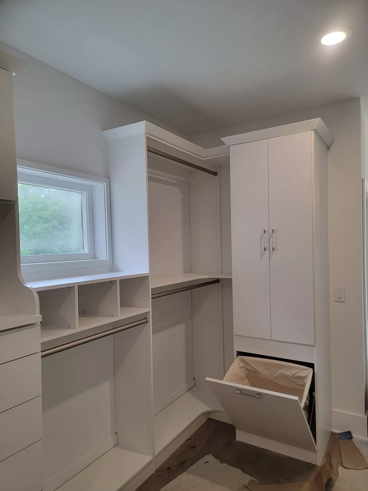 We design and install custom closets, pantries, laundry rooms, mudrooms, and storage systems tailored to your home and your habits. From walk-in closets to reach-ins and everything in between, we focus on smart layouts, durable materials, and clean finishes that hold up over time.